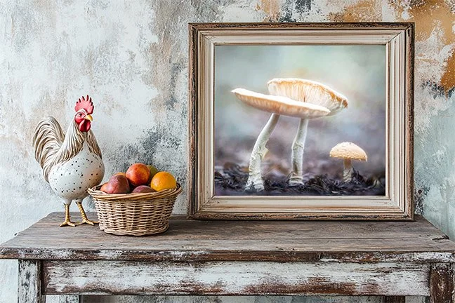 “Mushroom” doesn’t always mean rustic or playful, fine-art interpretations can look refined & modern. Framed pieces or canvas textures balance whimsy with elegance, fitting seamlessly into today’s interior styles.