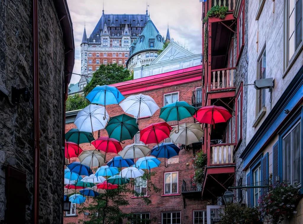 COLORFUL UMBRELLAS IN QUEBEC CITY, CANADA